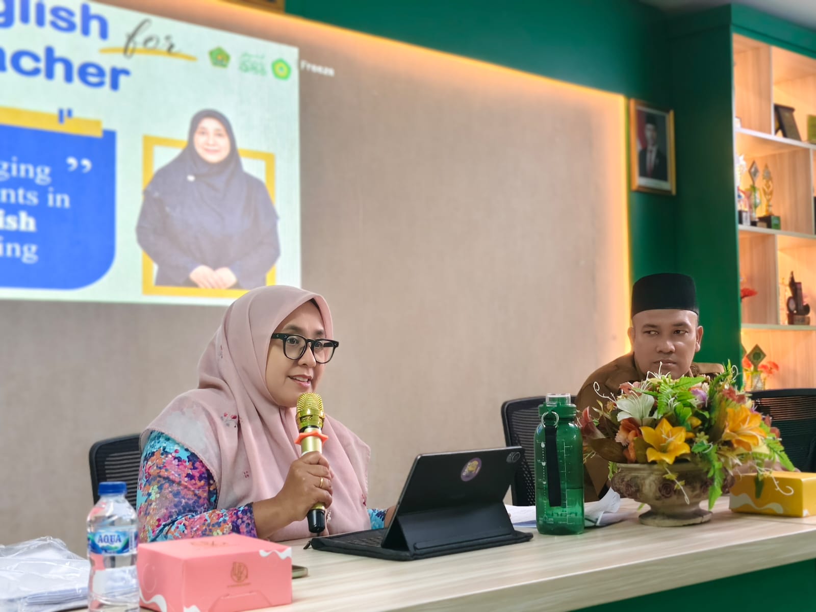 Pelatihan ini menghadirkan pemateri Ibu Sholawati, S.Pdi,MA,TESOL yang menyampaikan strategi pengajaran bahasa Inggris, peningkatan komunikasi aktif, serta penguatan lingkungan berbahasa (language environment) di pesantren. adapaun acara dibuka langsung oleh Kabid Pendidikan dan Pengajaran Ust. Yasmar, S.Sos, M,Pdi